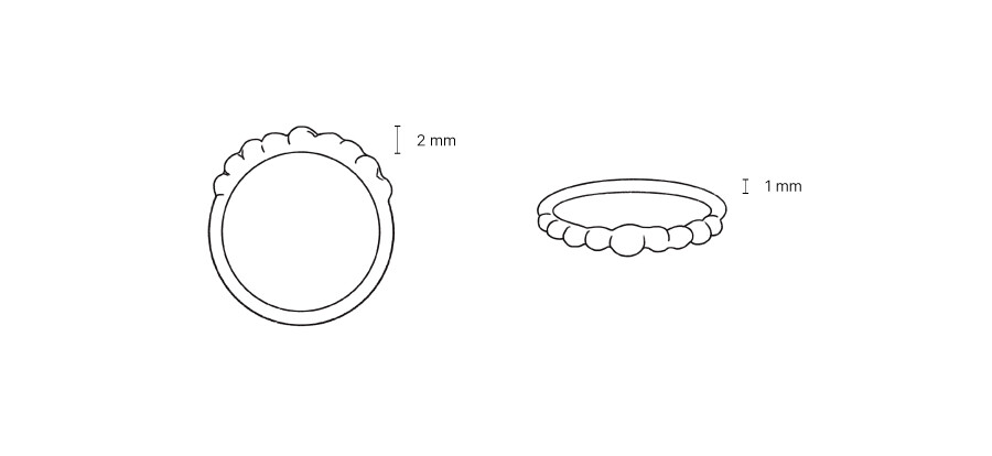 부딪히고 깎이고 깨지고 다듬어지는 자연의 흐름에 맡겨져 여기저기 둥글게 둥글게 굴러들어온 조약돌과 모래알들의 반짝이는 형태를 살려 디자인하였습니다. 얇은 라인을 따라 맺혀있는 물거품 같기도 한 반지가 주는 깨끗하고 맑은 이미지가 깔끔하면서도 심심하지 않은 느낌을 줍니다. 여러개를 착용하거나 다른 반지와 레이어드 하기에도 좋습니다.