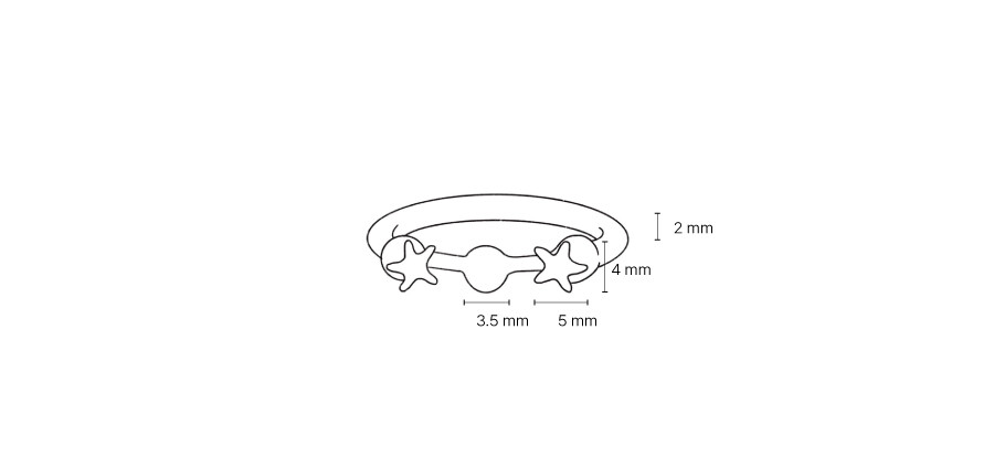 • 토마토 3.5 mm, 별 5 x 4 mm, 링 두께 ± 2 mm