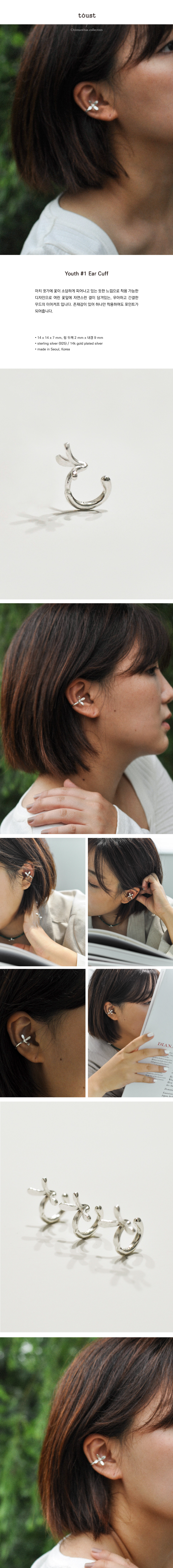 마치 귓가에 이팝나무 꽃이 소담하게 피어나고 있는 듯한 느낌으로 착용 가능한 디자인으로, 여린 꽃잎에 자연스런 결이 담겨있는 우아하고 간결한 무드의 이어커프 입니다.