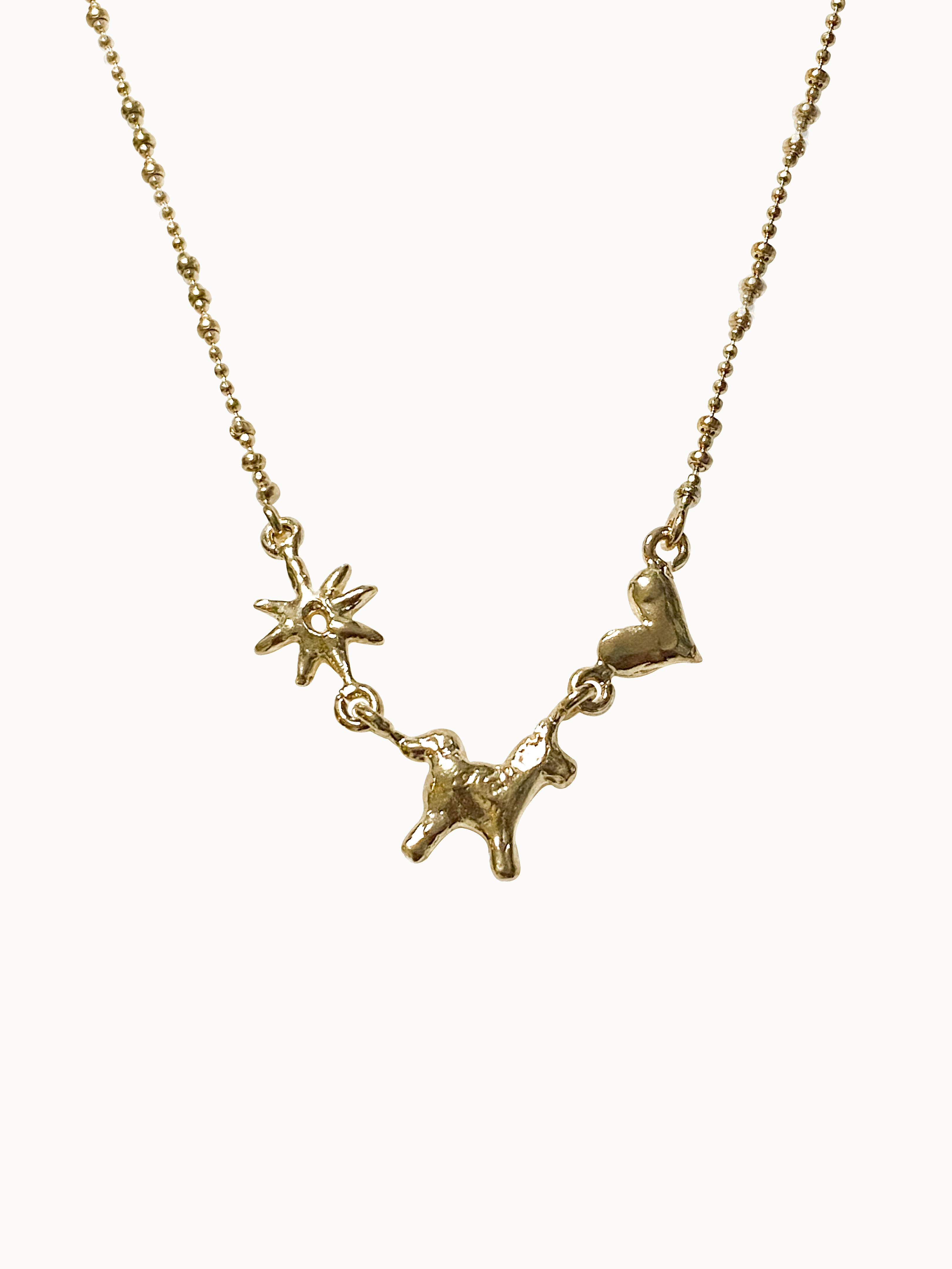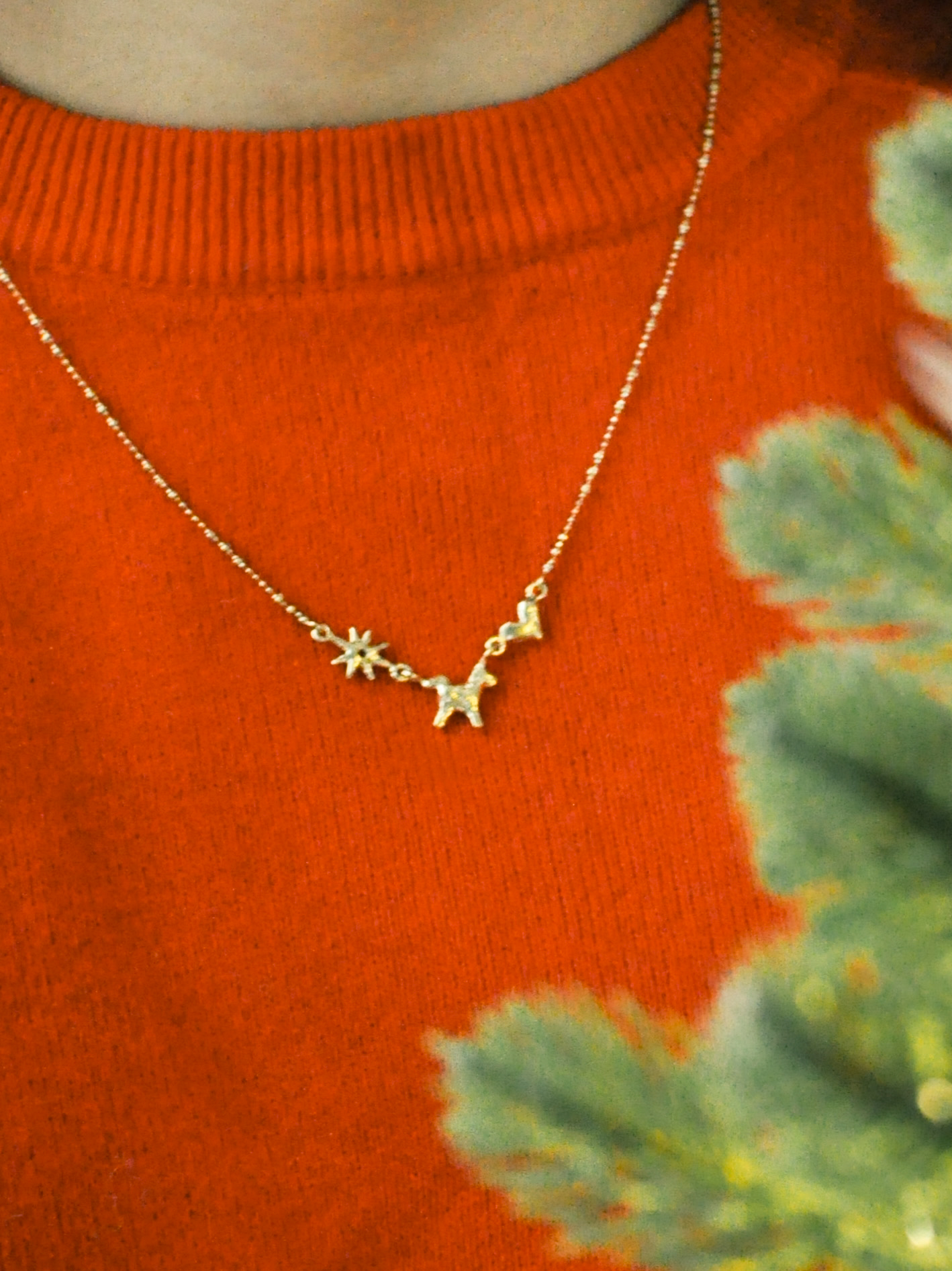 마음에 드는 수형의 전나무에 오너먼트를 골라 장식하는 즐거움. 트리를 바라보며 크리스마스를 기다리는 행복한 시간을 담은 목걸이 입니다. 손으로 빚은 듯 투박한 마감 느낌으로 제작한 팬던트와 트리를 휘감는 장식줄처럼 아름다운 체인의 조화에서 빈티지한 무드가 느껴지며, 오래도록 소장하며 착용하고 싶어지는 매력적인 디자인 주얼리 입니다.