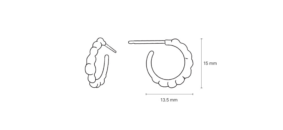 부딪히고 깎이고 깨지고 다듬어지는 자연의 흐름에 맡겨져 여기저기 둥글게 둥글게 굴러 들어온 조약돌과 모래알들의 반짝이는 형태를 살려 디자인하였습니다. 심플하지만 얼굴에 포인트를 주기에 딱 알맞은 크기의 링 이어링으로, 의도적으로 뒤쪽의 오픈 된 부분을 좁게 만들어 더 깔끔한 링 형태를 유지하도록 하였습니다. 착용할 때에 이어링 침을 꽂은 후 귓볼을 링 안으로 손으로 살짝 밀어 넣어 정리하여 착용하여 주세요.