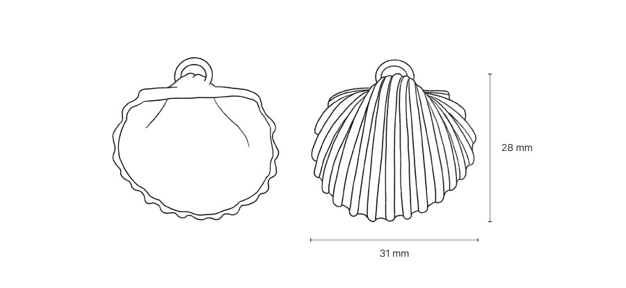 모래 해변에서 모양이 제법 온전하고 예쁜 조개 껍질을 발견하였을 때, 마치 바다가 나에게 주는 선물 같다는 생각이 듭니다. 그렇게 모아두었던 조개껍질들 중에 가장 결이 예쁜 조개를 골라 그 형태와 미감을 그대로 따라서 만든 조개 팬던트 입니다. 실버 체인과 어우러져 우아한 가운데 조개의 표면 텍스처 유광/무광에 따라 화려함과 자연스러움이 더해지는, 각각 다른 매력이 있습니다.(*조개 안쪽은 모두 유광)